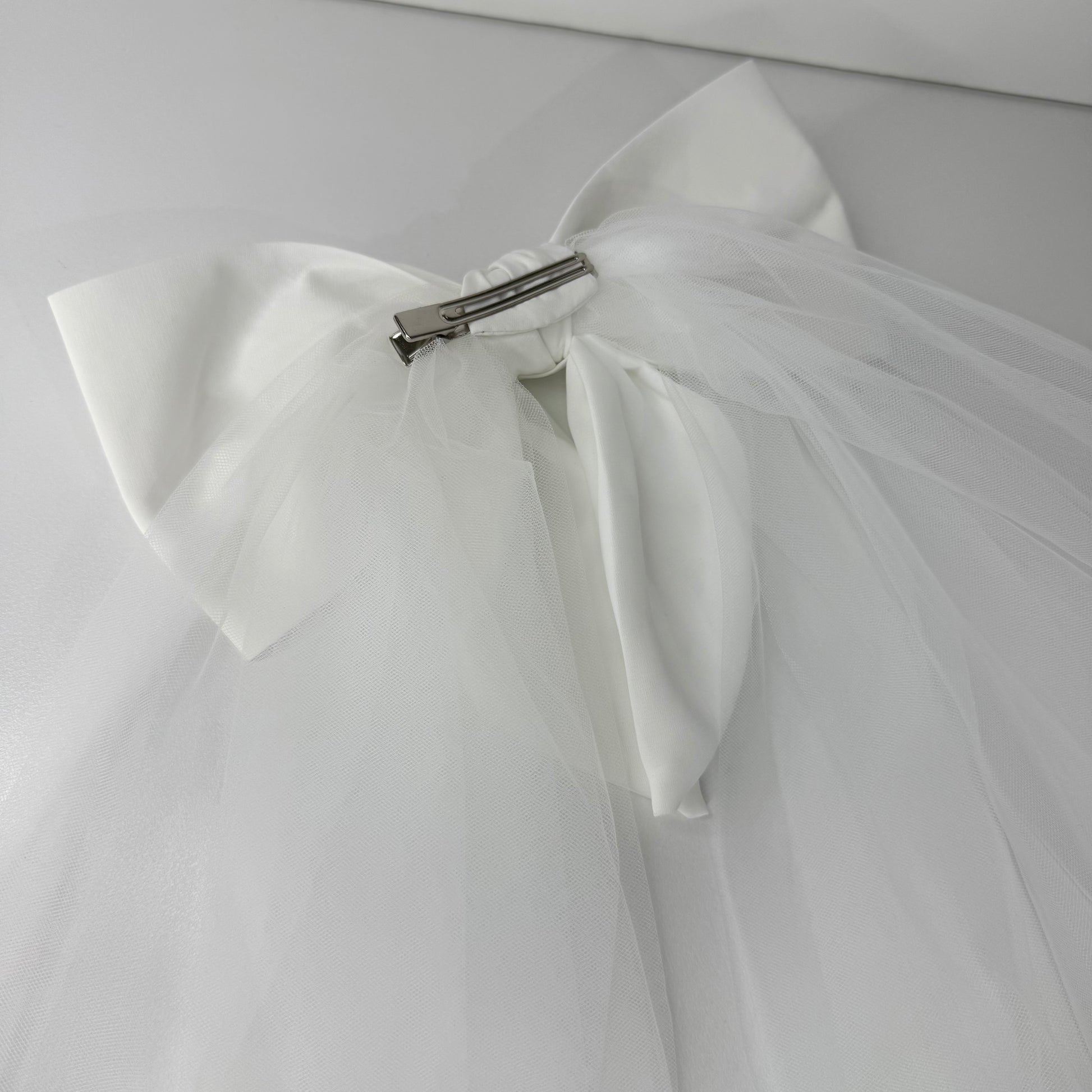Customized Large White Bow Veil Clip