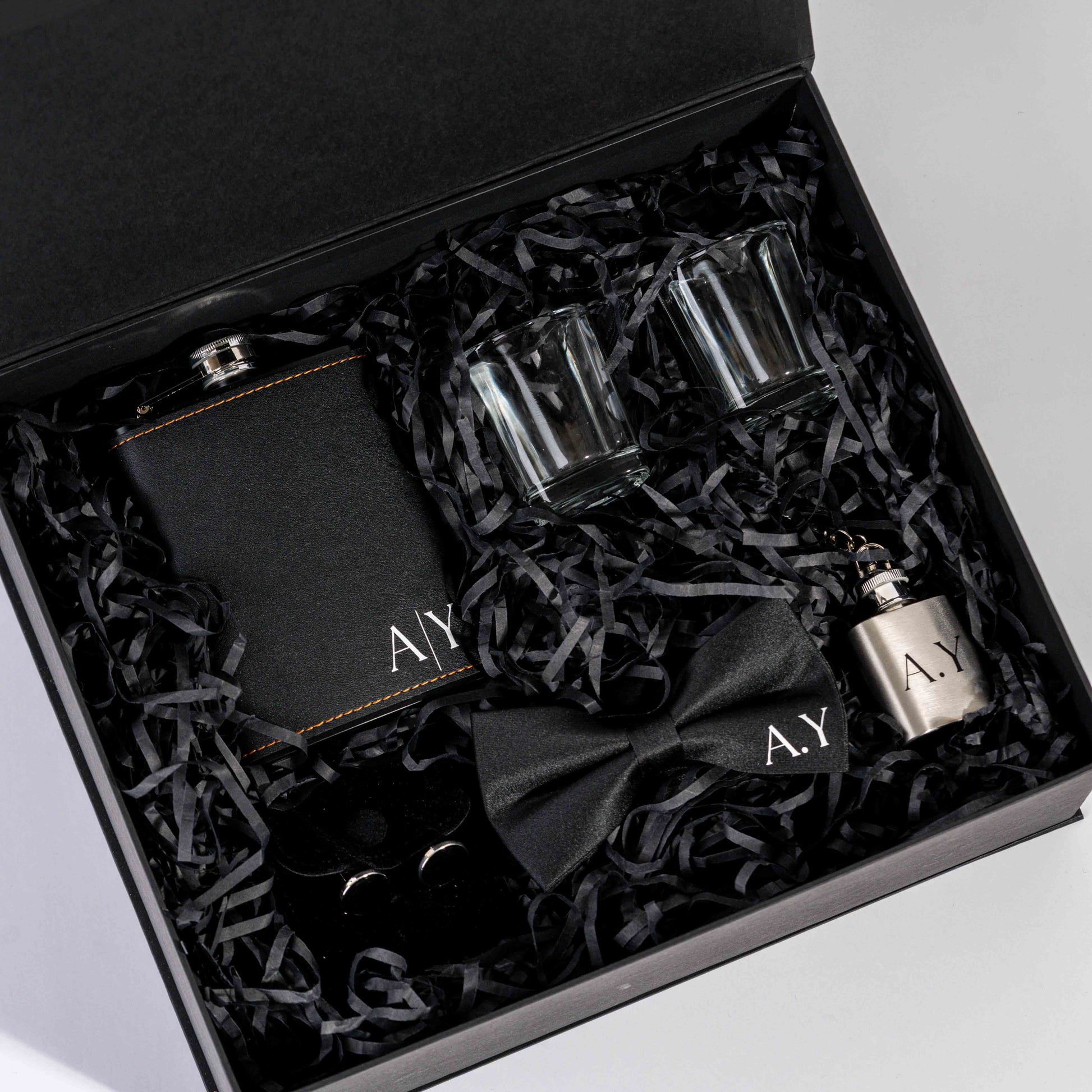 Customize this gift box to your groomsman and celebrate him with timeless accessories on your special day!