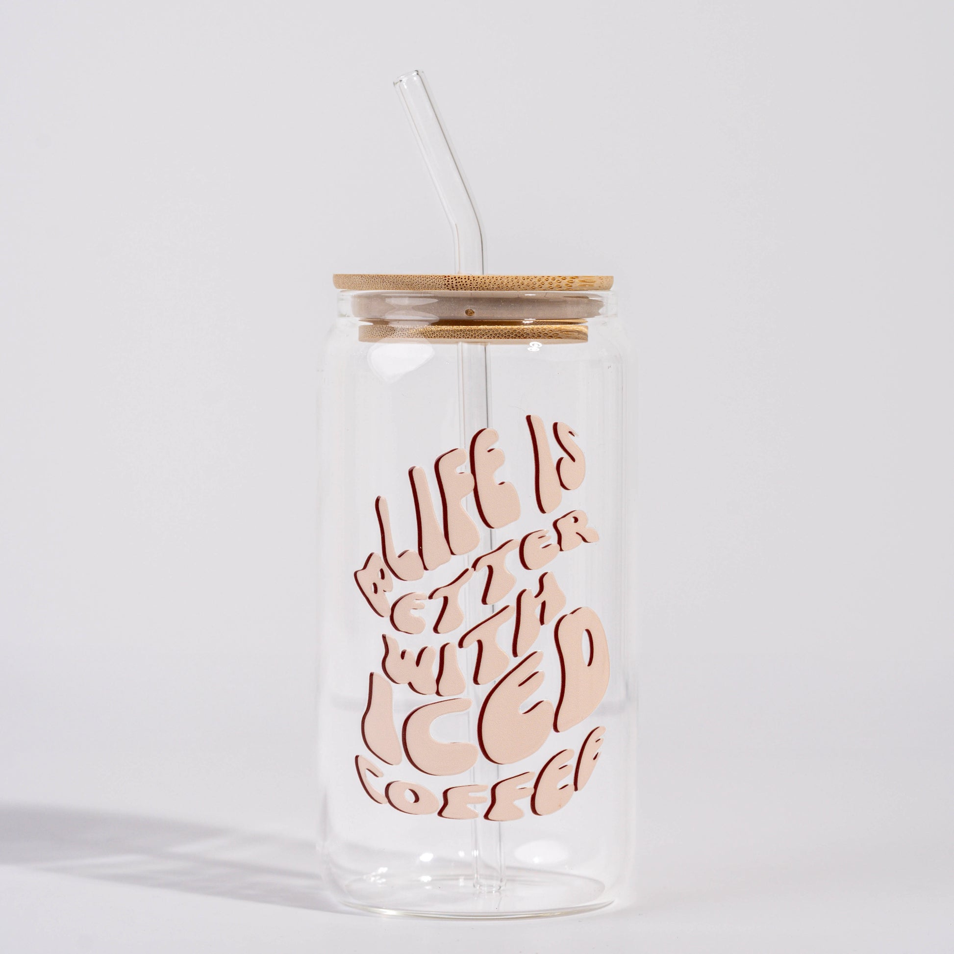 Enjoy your iced coffee or juices in style with our durable glass straw cup, available in many designs!