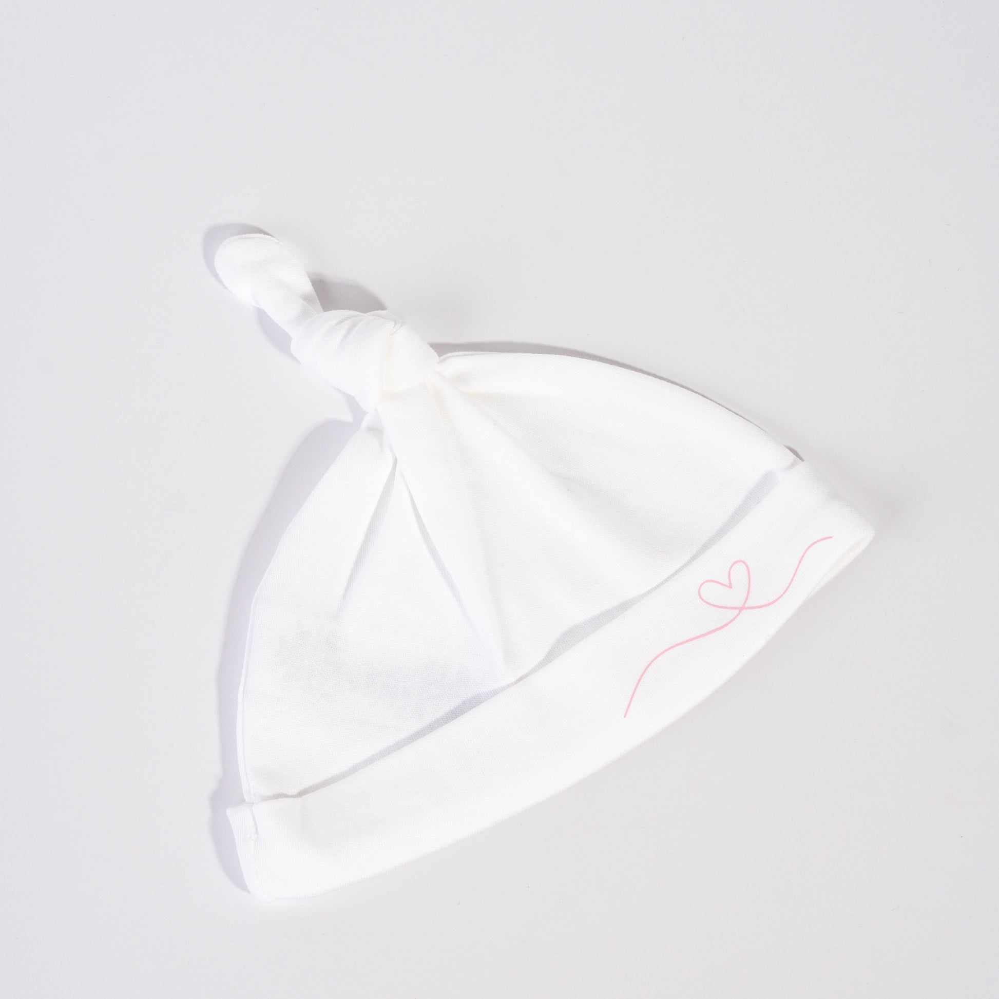 A soft white hat with a sweet pink heart!